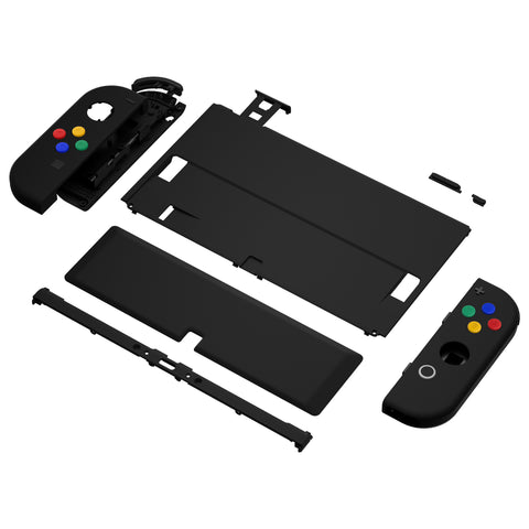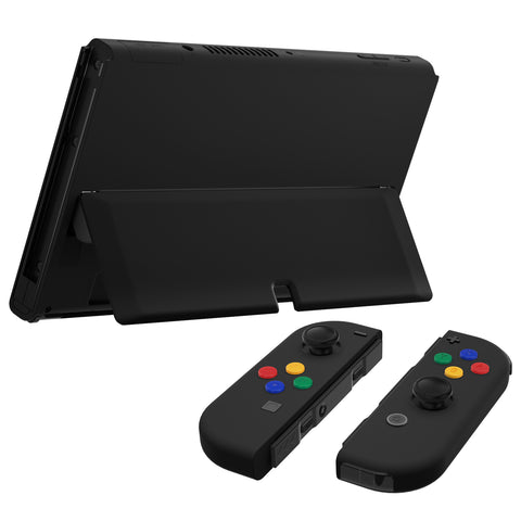 eXtremeRate Black Full Set Shell for Nintendo Switch OLED, Replacement Console Back Plate & Kickstand, NS Joycon Handheld Controller Housing & Buttons for Nintendo Switch OLED - AQUSOP001