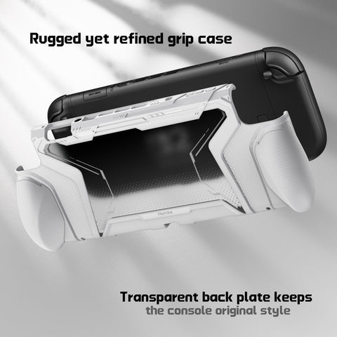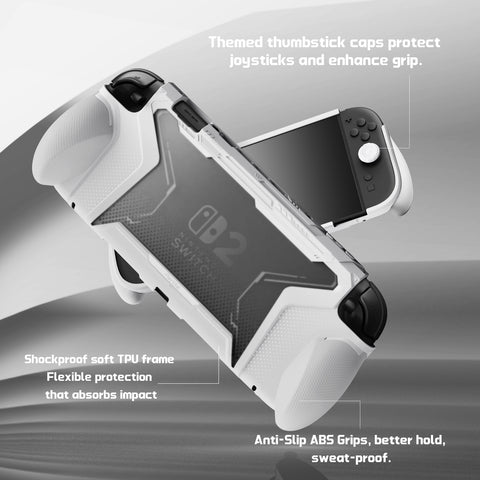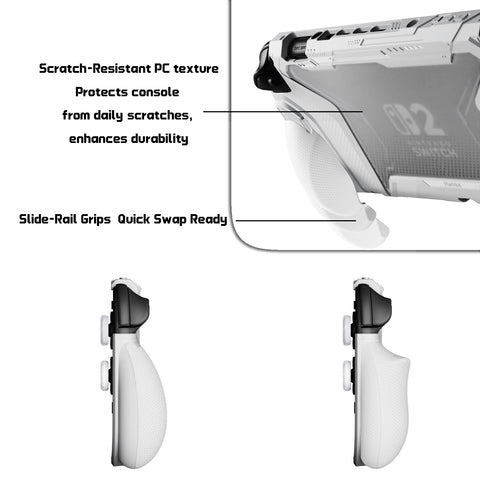 PlayVital BEYOND-GRIP Interchangeable Grip Protective Cover for Nintendo Switch 2 (2025), Ergonomic TPU Dockable Case Accessories for Switch 2 with Joystick Caps, Shockproof - White - XJKNTM002