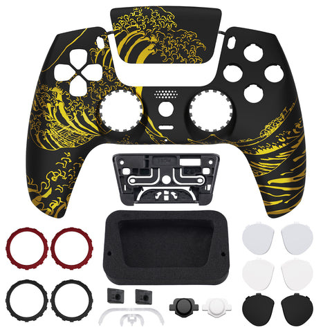 eXtremeRate LUNA Redesigned Front Shell with Touchpad for PS5 Controller BDM-010/020/030/040/050 - The Great GOLDEN Wave Off Kanagawa - Black - GHPFT014