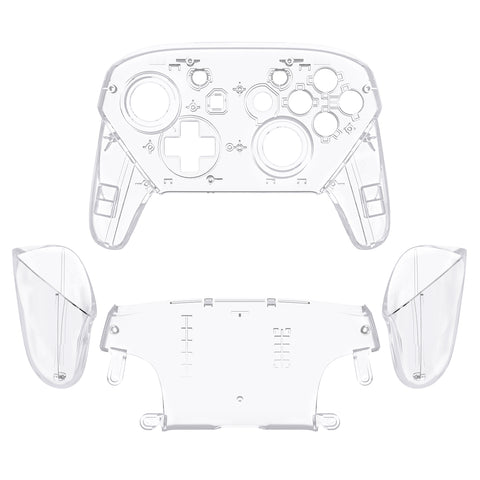 eXtremeRate Crystal Clear Faceplate Backplate Handles for NS Switch Pro Controller - Controller NOT Included - FRP360