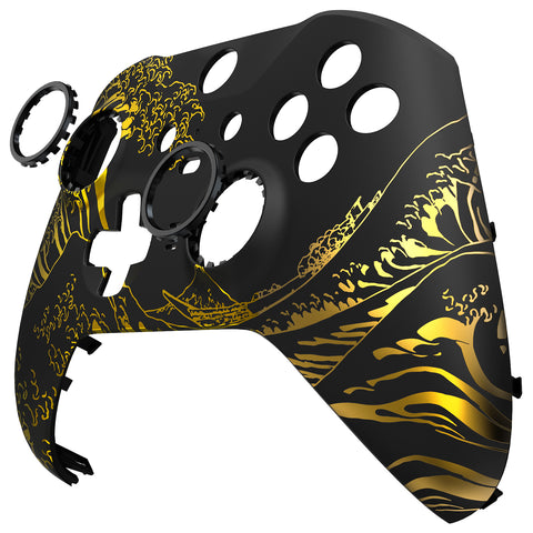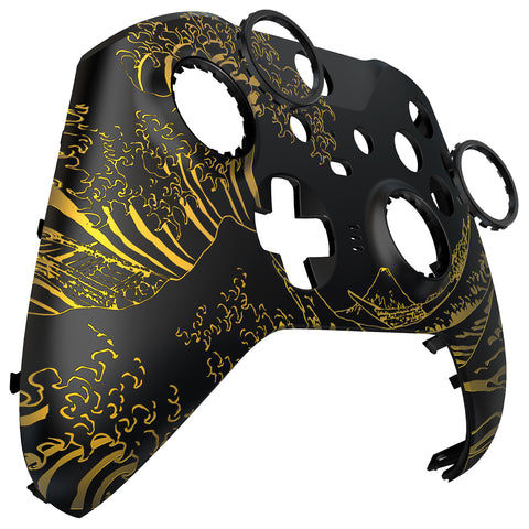 eXtremeRate Replacement Front Housing Shell Case for Xbox One Elite Series 2 & Elite 2 Core Controller (Model 1797) - The Great GOLDEN Wave Off Kanagawa - Black - ELT154