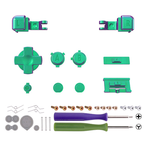 eXtremeRate Chameleon Green Purple Custom Full Set Buttons for Gameboy Advance SP, Replacement A B L R Button Power On Off Volume Button D-pad Key for GBA SP Console - Console NOT Included - ASPJ213