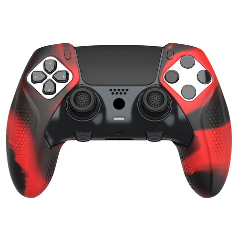 PlayVital Ninja Edition Anti-Slip Half-Covered Silicone Cover Skin for ps5 Edge Controller, Ergonomic Protector Soft Rubber Case for ps5 Edge Wireless Controller with Thumb Grip Caps - Red & Black - EYPFP016