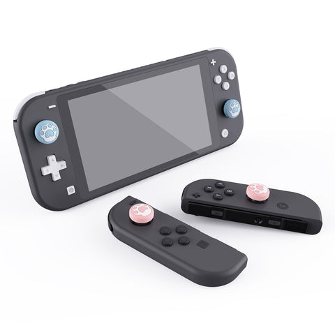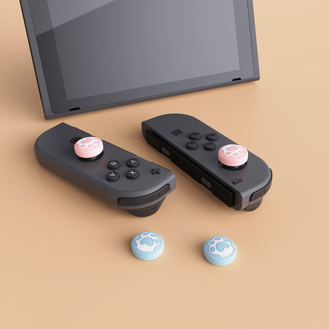 PlayVital Cat Paw Cute Switch Thumb Grip Caps, Heaven Blue & Pale Red Joystick Caps for NS Switch Lite, Silicone Analog Cover Thumbstick Grips for Joycon of Switch OLED - NJM1126