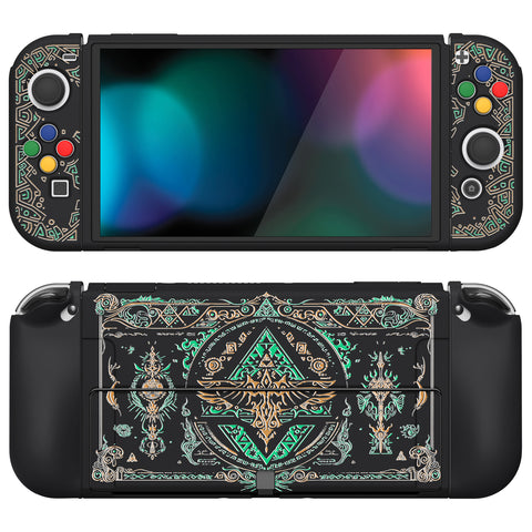 eXtremeRate The Great GOLDEN Wave Off Kanagawa - White Full Set Shell for Nintendo Switch OLED, Replacement Console Back Plate & Kickstand, NS Joycon Handheld Controller Housing with Full Set Buttons for Nintendo Switch OLED - QNSOT003
