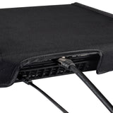 The precise back cutaway allows you to cover between gaming sessions without removing the power cables.