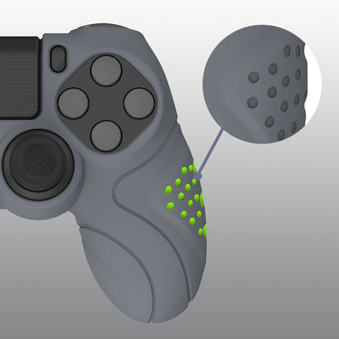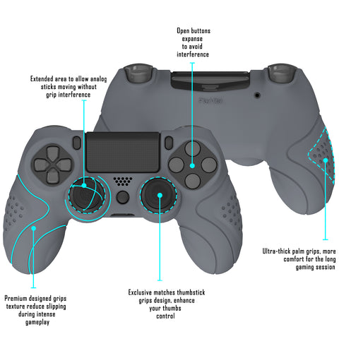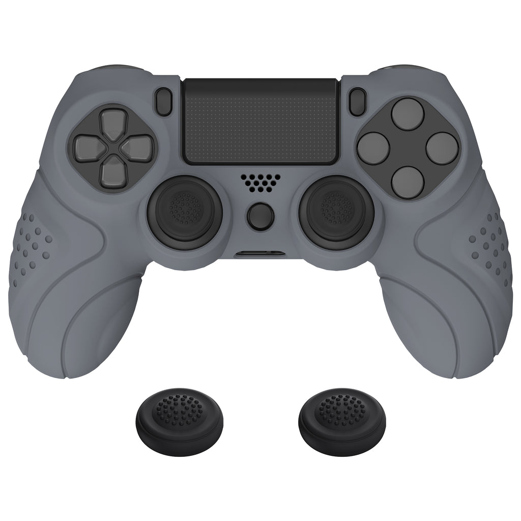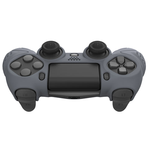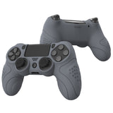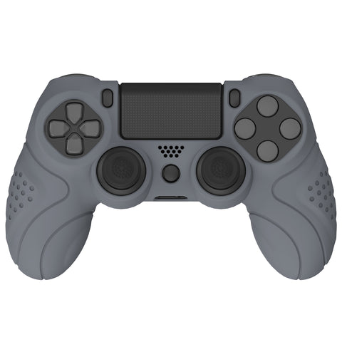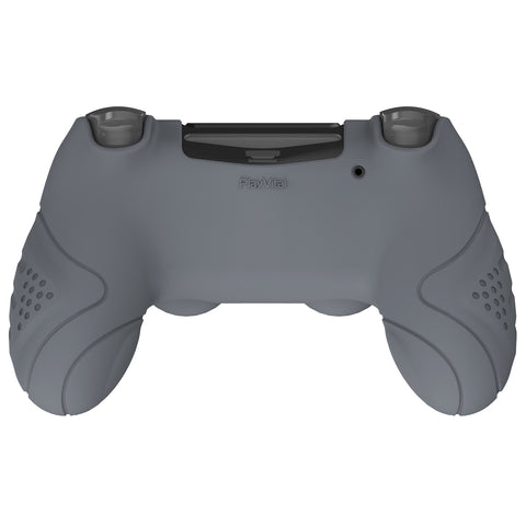PlayVital Guardian Edition Gray Ergonomic Soft Anti-Slip Controller Silicone Case Cover for PS4, Rubber Protector Skins with black Joystick Caps for PS4 Slim PS4 Pro Controller - P4CC0068