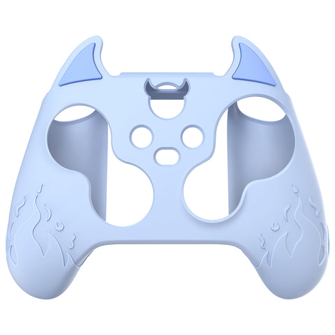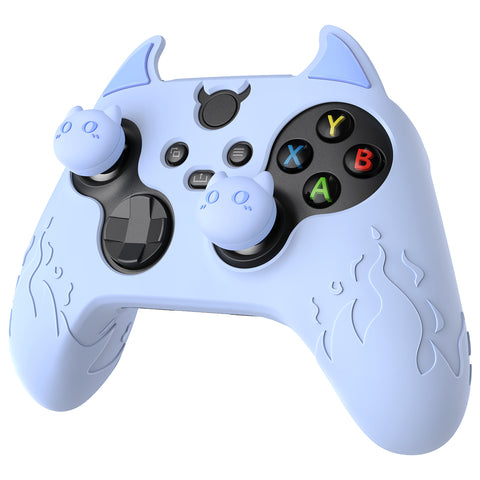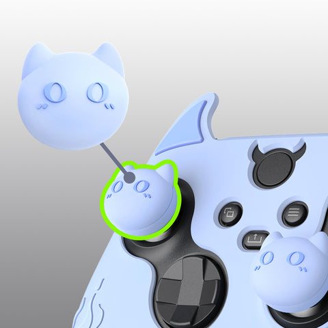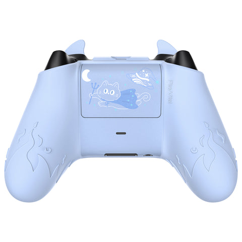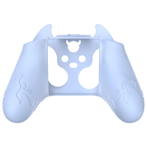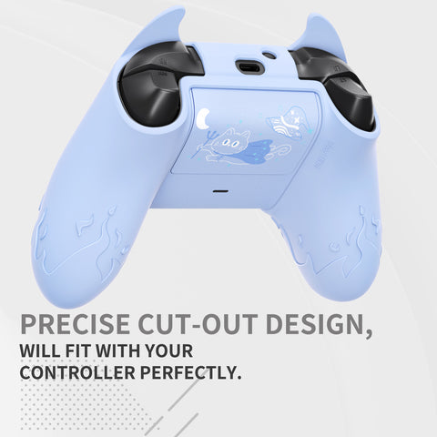 3. Distinctive exterior design with impressive devil-themed details. The silicone case cover is adorned with devilish elements, including demon ears near the LB and RB buttons, hollowed demon logo outlines, raised flame patterns along the left and right grips, lovely demon cat air-cushioned joystick caps and matching back cover decal.