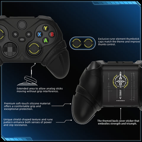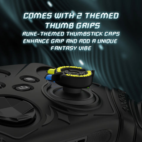 6. This complete fantasy set includes rune-themed thumbstick caps that add both grip and style, plus the sacred sword backplate sticker that unifies your fantasy gaming setup.