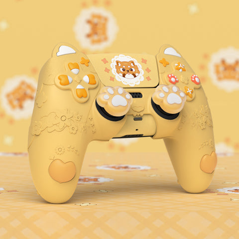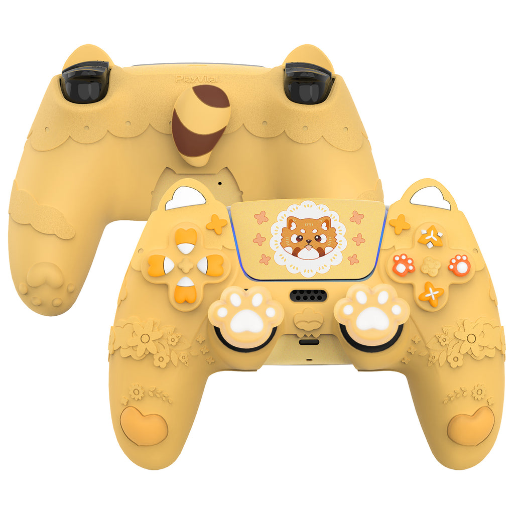 PlayVital Cute Spring Lesser Panda Silicone Cover for PS5 Controller with Joystick Cap and Sticker, Anti-Grip Shockproof Skin, Compatible with Charging Station - Warm Yellow - YSSPFP001