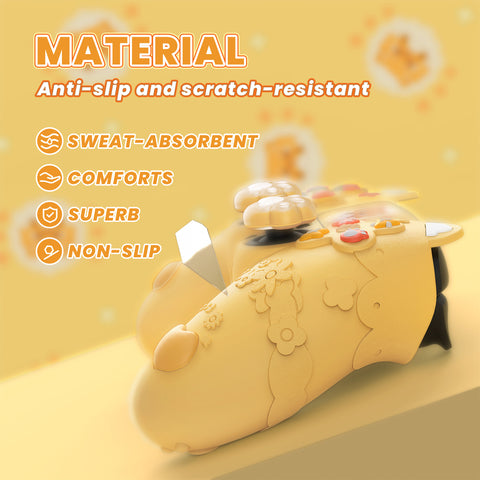 2. This silicone controller cover is uniquely adorned with adorable Spring Lesser Panda themed details. It includes panda ears at the top of the front, a heart icon and wreath on the front of the grip, and a red panda tail and paw print on the back.  It also comes with a themed paw print thumb grip caps, panda touchpad sticker, logo stickers and back charging port skins for completing the kawaii theme.