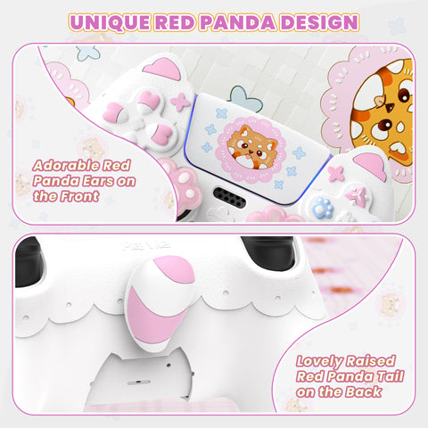 2. This silicone controller cover is uniquely adorned with adorable Spring Lesser Panda themed details. It includes panda ears at the top of the front, a heart icon and wreath on the front of the grip, and a red panda tail and paw print on the back.  It also comes with a themed paw print thumb grip caps, panda touchpad sticker, logo stickers and back charging port skins for completing the kawaii theme.
