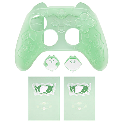 PlayVital for Xbox Series X/S Controller Silicone Cover, Cute Ocean Whisper Series Semi-Clear Silicone Skin Grip for Xbox Core Wireless Controller with Thumb Grip & Sticker, Full Protection - Pastel Green - PXKX3P003