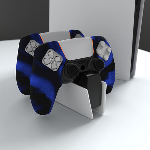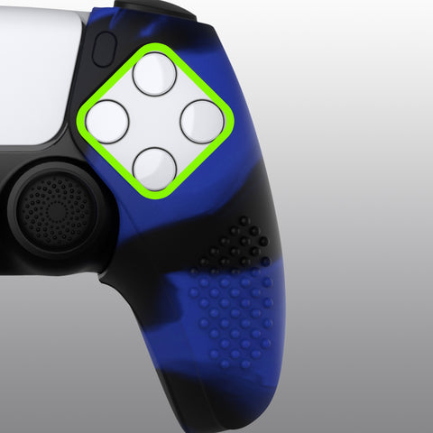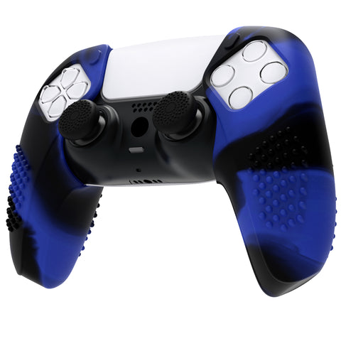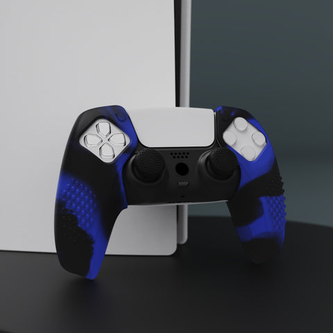 PlayVital 3D Studded Blue & Black Ergonomic Soft Controller Silicone Case Grips for PS5, Rubber Protector Skins with 6 Black Thumbstick Caps for PS5 Controller - Compatible with Charging Station - TDPF040