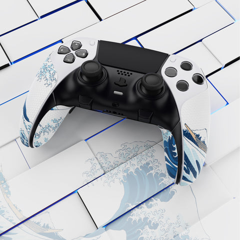 PlayVital Anti-Skid Sweat-Absorbent Controller Grip for ps5 Edge Wireless Controller, Professional Textured Soft PU Handle Grips Anti Sweat Protector for ps5 Edge Controller - The Great Wave off Kanagawa - PFPJ156