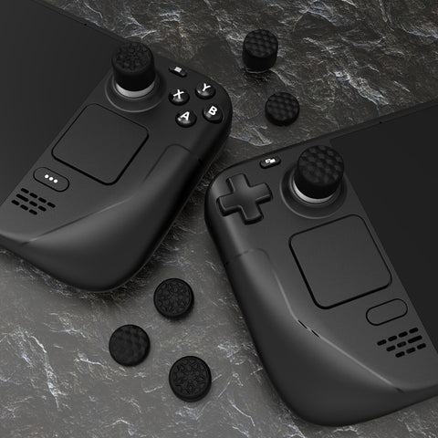 PlayVital Diamond Grain & Crack Bomb Design Ergonomic Stick Caps Thumb Grips for Steam Deck LCD & OLED, for PS Portal Remote Player with 3 Height Convex and Concave - Black - YFSDM039