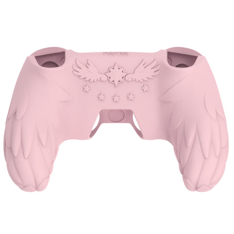 PlayVital Magic Wings Protective Silicone Cover Skin for PS5 Controller – Soft Anti-Slip Grip Protector Case for PS5 Controller with Thumbstick Caps & Themed Stickers, Charging Station Compatible - Pink - YLEPFP003