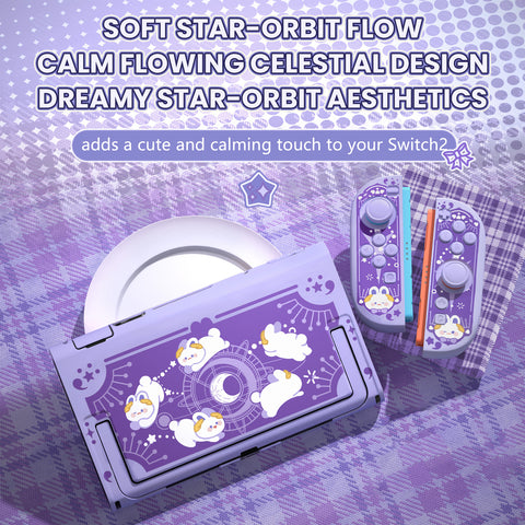 PlayVital Kawaii Dockable Hard Protective Case for Nintendo Switch 2 Anti-scratch, Shockproof Cover Skin for Switch 2 with Thumb Grip & Sticker & Button Caps - Celestial Rabbit Orbit - MURNTV002