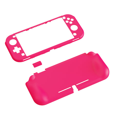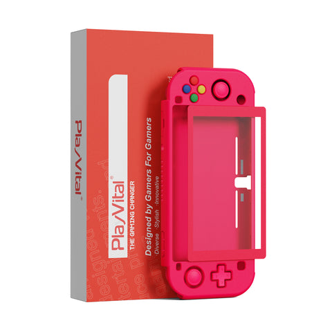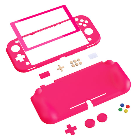 PlayVital ZealProtect Protective Case for Nintendo Switch Lite, Hard Shell Ergonomic Grip Cover for Switch Lite with Screen Protector & Thumb Grip Caps & Button Caps - Bright Pink - PSLYP3016