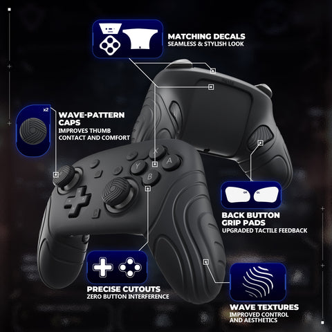 5. The set includes textured thumbstick caps for improved joystick control and comfort, plus soft silicone back button covers made for the rear buttons on the Switch 2 Pro controller—providing a smoother and more comfort press feel. All parts install easily and leave no residue.