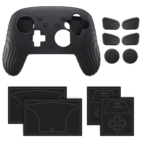 PlayVital Samurai Edition Protective Skin Case for Nintendo Switch 2 Pro Controller with Back Button Caps & Thumb Grips & Stickers, Shockproof for Switch 2 Pro Controller Silicone Cover - Black - BADPTP001