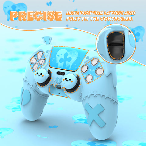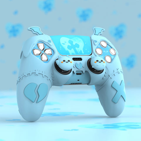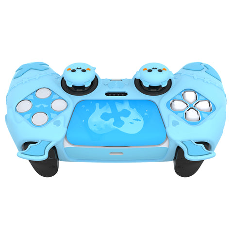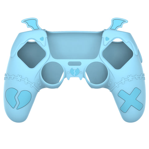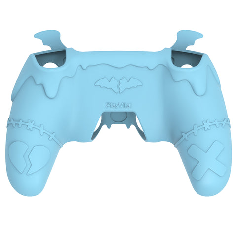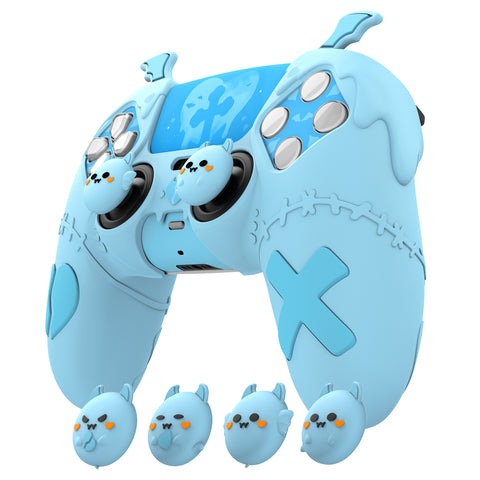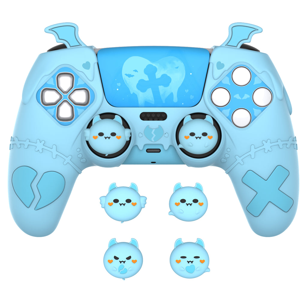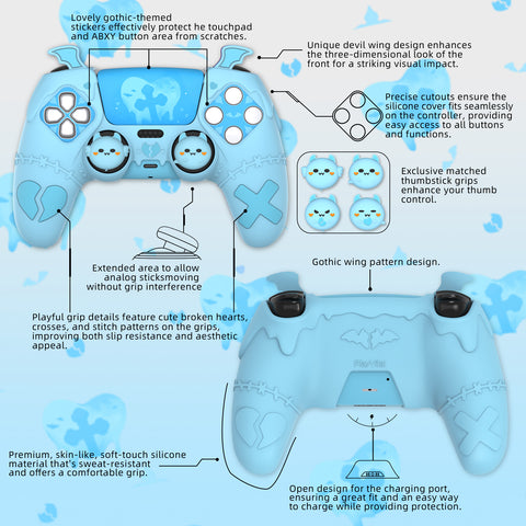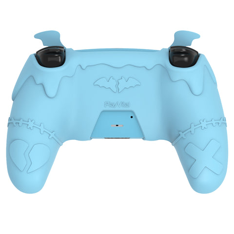 PlayVital Gothic Imp Series Cute Silicone Case for ps5 Controller with 4 Thumb Grips and 6 Stickers, Anti-Slip Silicone Skin Cover, Compatible with ps5 Charging Station - Aqua Blue - GTKPFP003