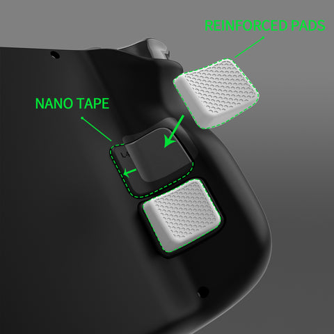 • Please make sure to follow the adhesive mark tips to paste the back buttons enhanced pads. Be sure to use the cleaning wipes to clean up the back buttons area before pasting the nano adhesive, otherwise it will make the adhesion decrease.