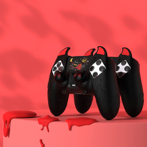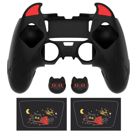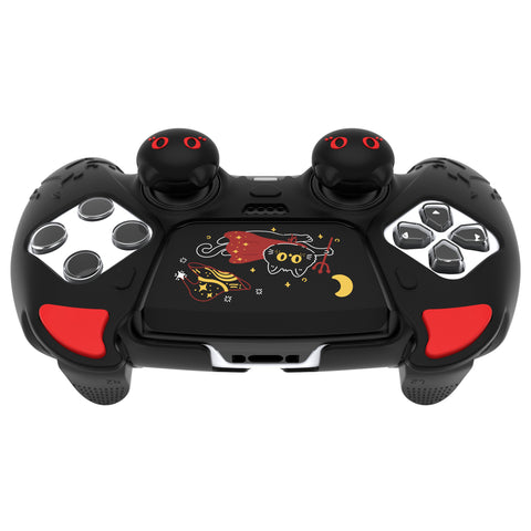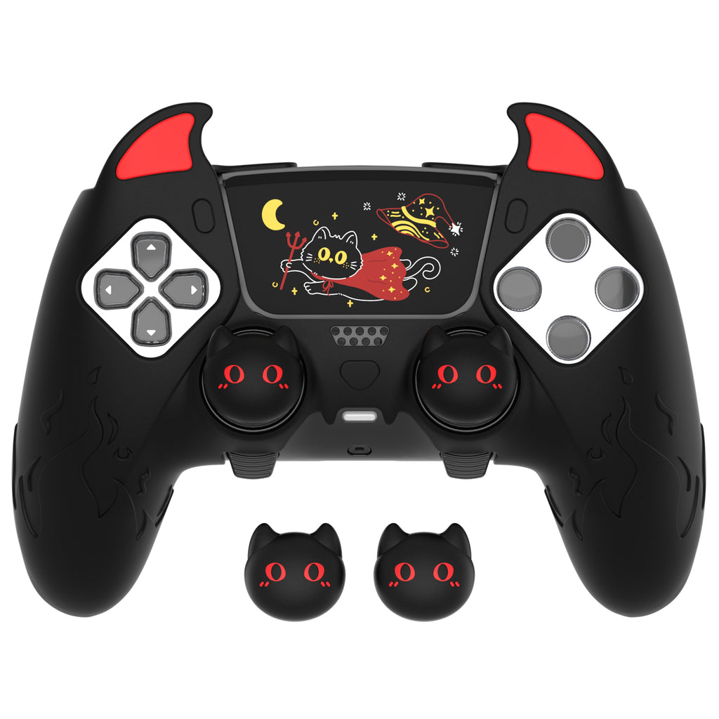 PlayVital Cute Demon Silicone Case for ps5 Edge Controller, Kawaii Controller Cover Skin Gamepad Protector for ps5 Edge Accessories with Touch Pad Sticker & Thumb Grip Caps - Black - MWKEGP001