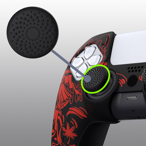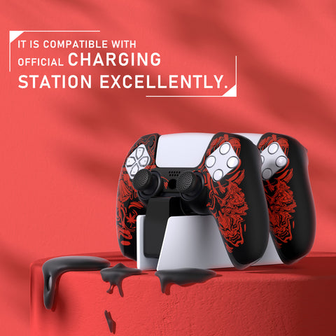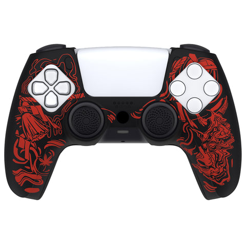 PlayVital Pure Series Samurai Prajna (Red) Dockable Model Anti-Slip Silicone Cover Skin with 6 Thumb Grip Caps for ps5 Controller Fits with Charging Station - EKPFL002
