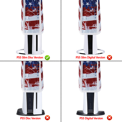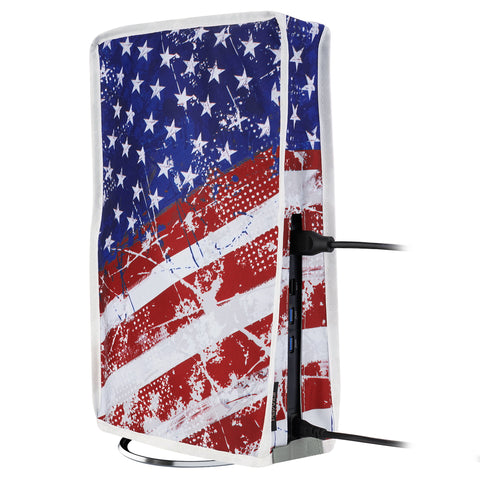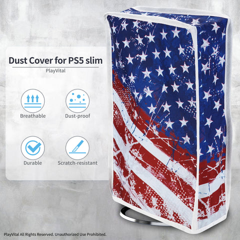 PlayVital Vertical Dust Cover for ps5 Slim Disc Edition(The New Smaller Design), Nylon Dust Proof Protector Waterproof Cover Sleeve for ps5 Slim Console - Impression US Flag - BMYPFH007