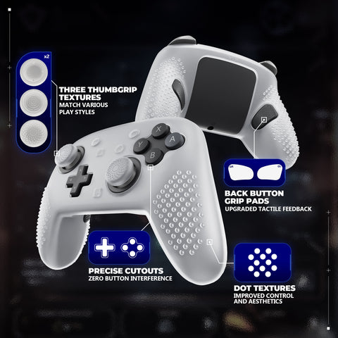 2. The ergonomic grip features strategically placed 3D studded textures aligned with natural pressure zones. Densely packed dots enhance fine control and grip stability, especially during fast-paced FPS aiming or advanced inputs in action and strategy games. Larger studs in the palm and finger support areas add comfort and reduce fatigue, while the surface design helps disperse sweat to maintain a secure hold.