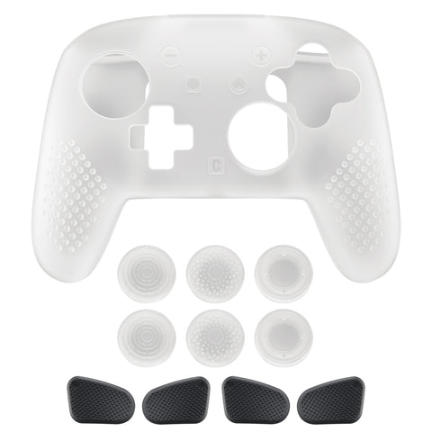 4. Included are 3 pairs of textured thumbstick caps for improved control and comfort across different play styles. Also included are soft silicone back button covers tailored for the rear buttons on the Switch 2 Pro, enhancing press feel. Adhesive-backed for secure placement, they remove cleanly without damage.