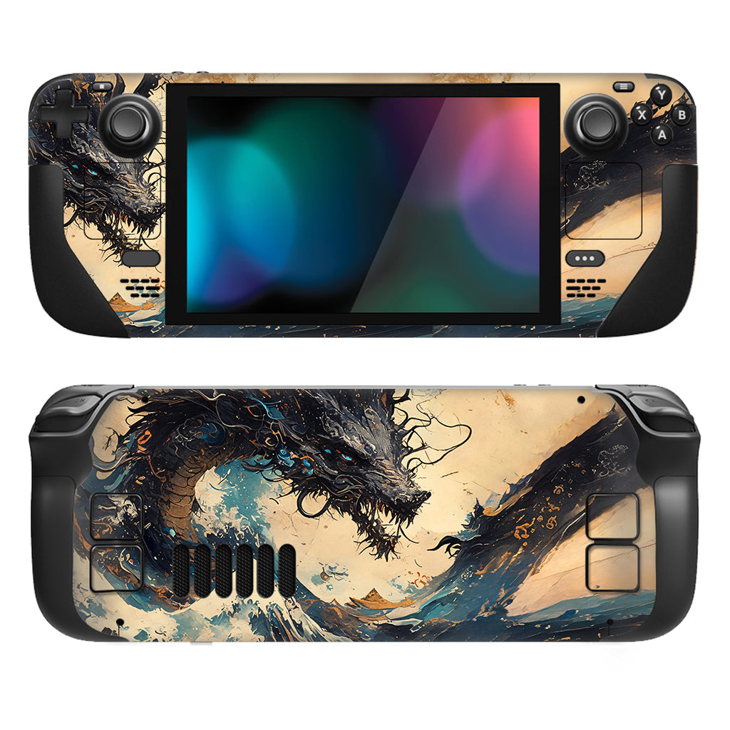 PlayVital Full Set Protective Skin Decal for Steam Deck LCD, Custom Stickers Vinyl Cover for Steam Deck OLED - Tempest Dragon - SDTM090