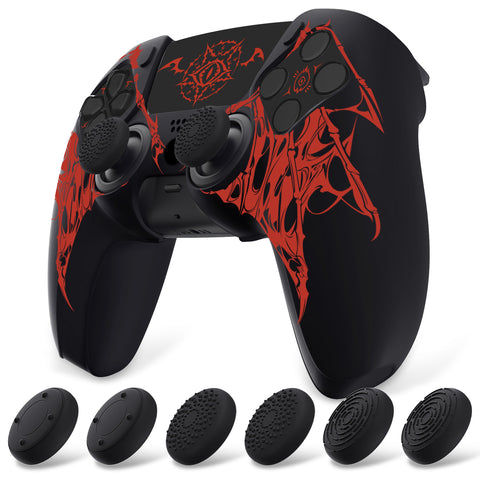 PlayVital Design for PS5 Controller Skin Cover Fit with Charging Station - Anti-Slip Silicone Controller Grip Case for PS5 with 6 Thumb Grip & Sticker, Pure Series Dockable Model - Wings Sigil Red - EKPFL008