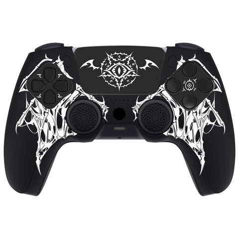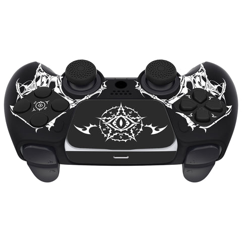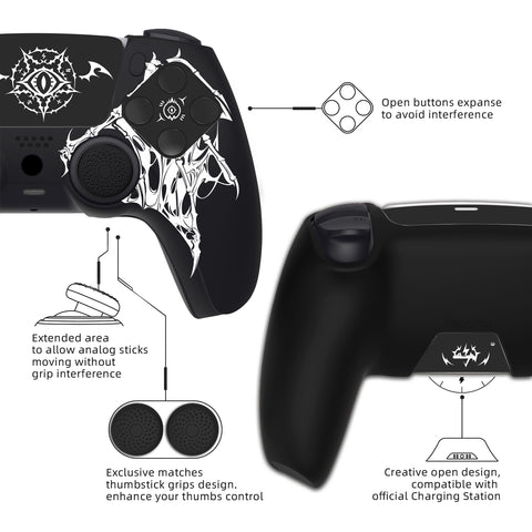 PlayVital Design for PS5 Controller Skin Cover Fit with Charging Station - Anti-Slip Silicone Controller Grip Case for PS5 with 6 Thumb Grip & Sticker, Pure Series Dockable Model - Wings Sigil White - EKPFL007