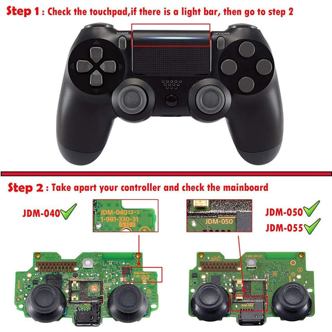 1, Please check the second picture of the listing. If the light bar is in the edge of the touch pad, then take apart your controller and check the mainboard. This is compatible with ps4 controller JDM-040 JDM-050 JDM-055!