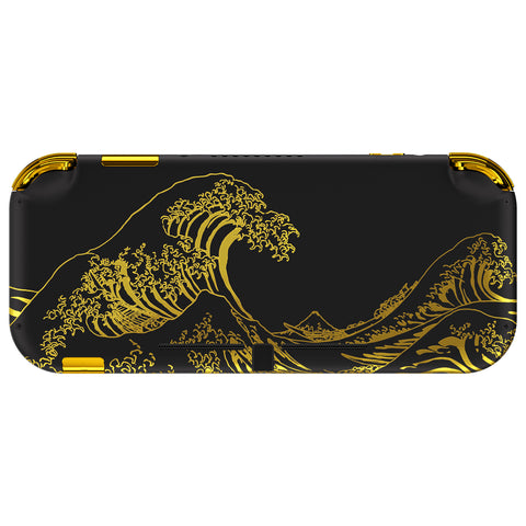 eXtremeRate The Great GOLDEN Wave Off Kanagawa - Black DIY Replacement Shell for Nintendo Switch Lite, NSL Handheld Controller Housing with Screen Protector, Custom Case Cover for Nintendo Switch Lite - DLT142