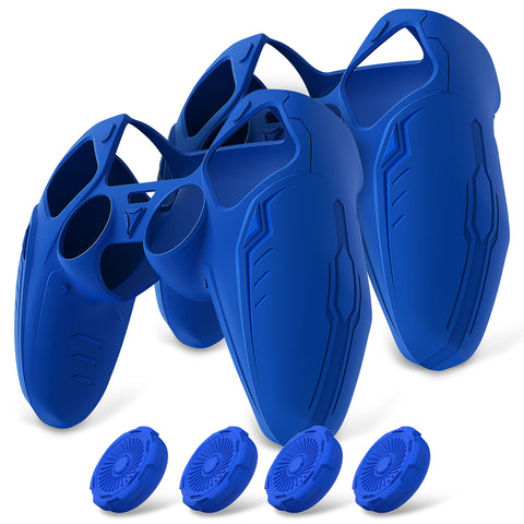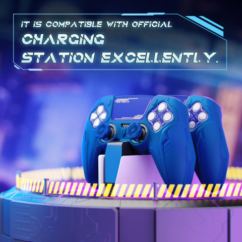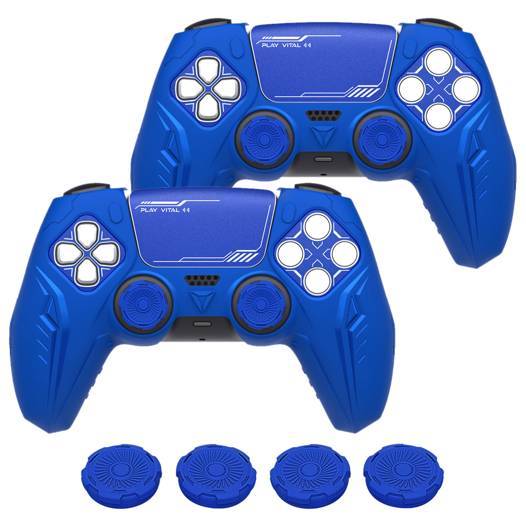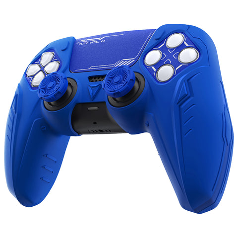 PlayVital 2 Set Futuristic CyberMech Design Silicone Case with Thumb Grips for PS5 Wireless Controller, Compatible with PS5 Official Charging Dock - Blue - CHXPFP008