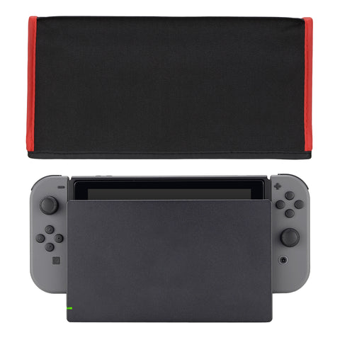 PlayVital Black & Red Trim Nylon Dust Cover, Soft Neat Lining Dust Guard, Anti Scratch Waterproof Cover Sleeve for NS & Switch OLED Charging Dock - NTA8003