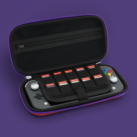 With 10 slots for game cartridges in the carrying case, allowing you to easily carry and storage your favorite games. Additional zippered mesh pocket can provides extra space for cables, earphones and other small but essential accessories.