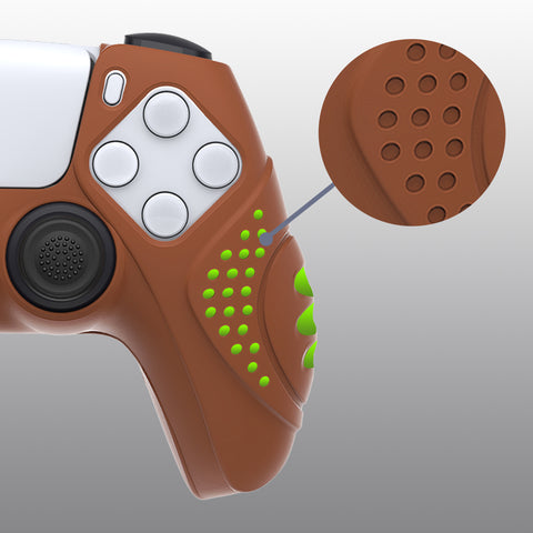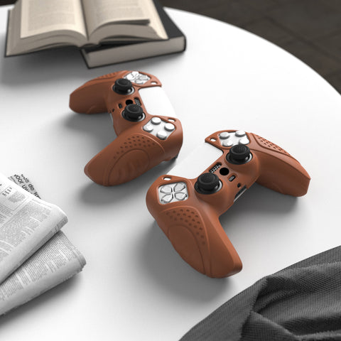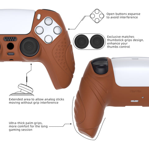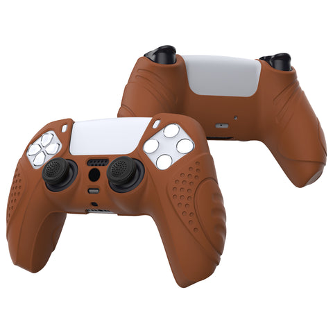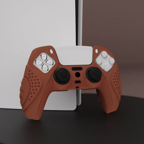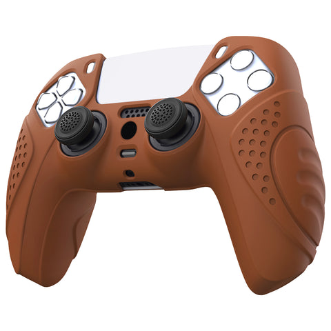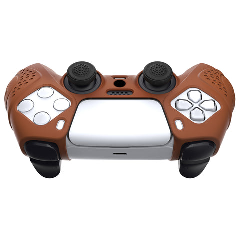 PlayVital Guardian Edition Signal Brown Ergonomic Soft Anti-slip Controller Silicone Case Cover, Rubber Protector Skins with Black Joystick Caps for PS5 Controller - YHPF025