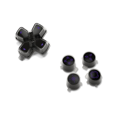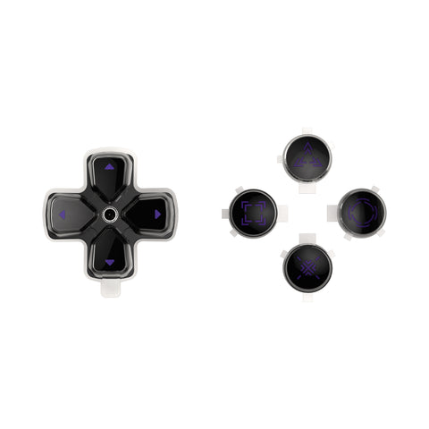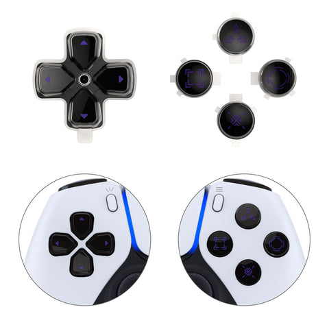 eXtremeRate Replacement Custom Dpad Action Buttons Three-Tone Black & Clear with Black Purple Redesigned Symbols D-pad Face Buttons Compatible with ps5 Controller - JPFF006